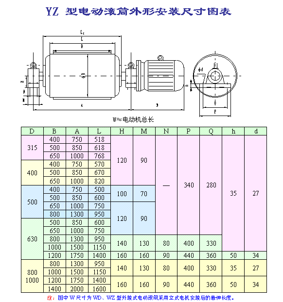 (1)因目前外裝式電動(dòng)滾筒尚未制定相關(guān)行業(yè)標(biāo)準(zhǔn),本廠將該型號(hào)電動(dòng)滾筒首位代號(hào)用W(“外裝”的首位漢語拼音)表示。外裝式電動(dòng)滾筒外置電機(jī)可分為立式電機(jī)和臥式電機(jī),用戶訂購(gòu)時(shí)請(qǐng)加以說明;