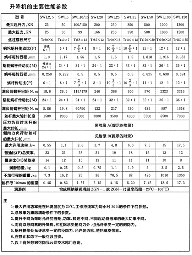 | 型號 | SWL 2.5 | SWL 5 | SWL 10 SWL 15 | SWL 20 | SWL 25 | SWL35 | SWL50 | SWL100 | SWL120 |